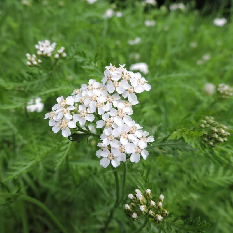 En été, les fleurs blanches en ombelle s’élèvent sur un feuillage finement découpé. Elle fait partie des plantes officinales indigènes.
