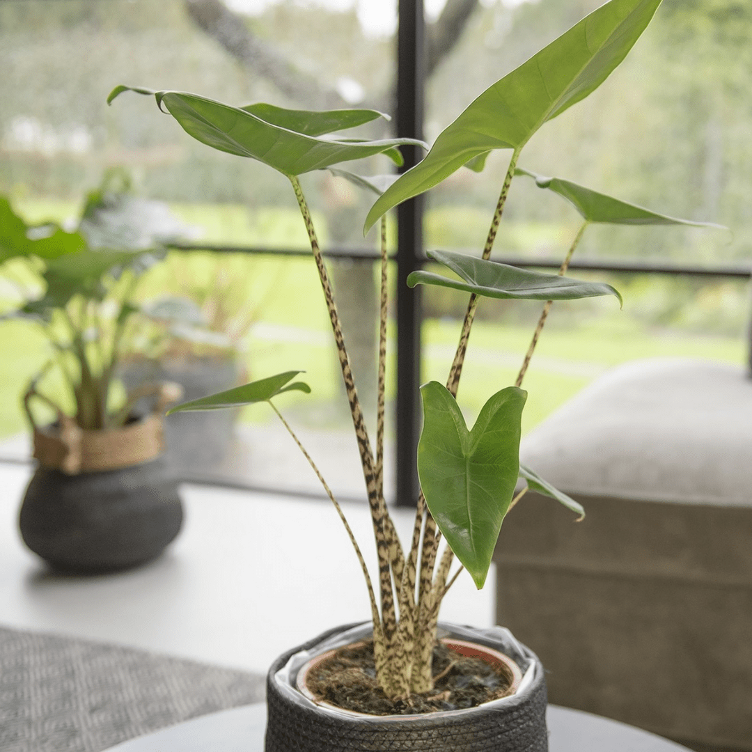Aussi appelé « oreille d’éléphant », l’Alocasia zebrina est une plante verte d’appartement très décorative et originale. Ses feuilles vert foncé sont supportées par de grandes tiges zébrées de noir. Cette plante originale formera une plante de 1 mètre de haut et 70 cm de large.