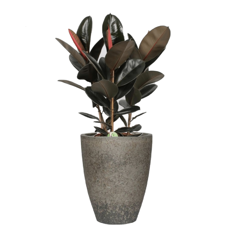 La composition végétale accueille un Ficus Abidjan d’environ 75 cm de hauteur, plante robuste, graphique et facile d’entretien, apportant une touche tropicale et élégante à votre intérieur.