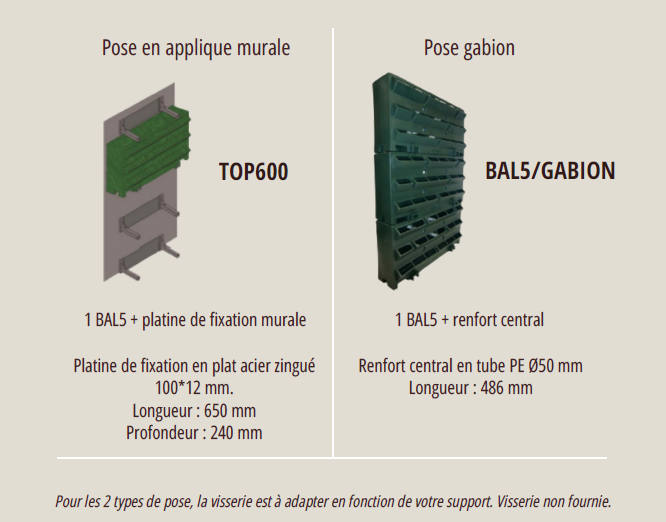 • 🛠️ Pose polyvalente : murale ou en gabion
