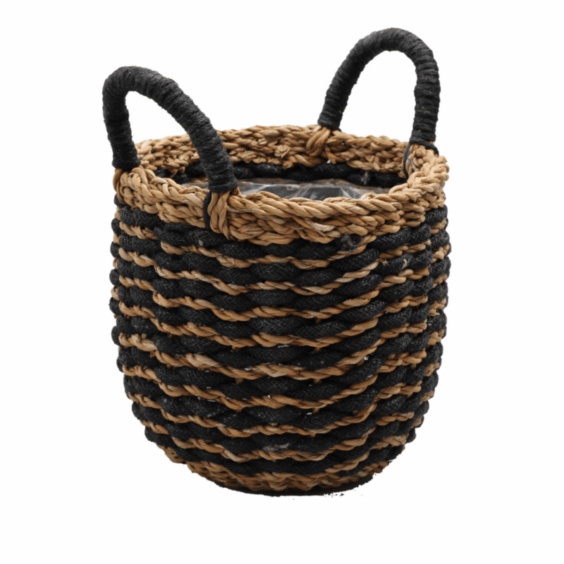 Cache-pot panier avec anses Cato rayé – Noir