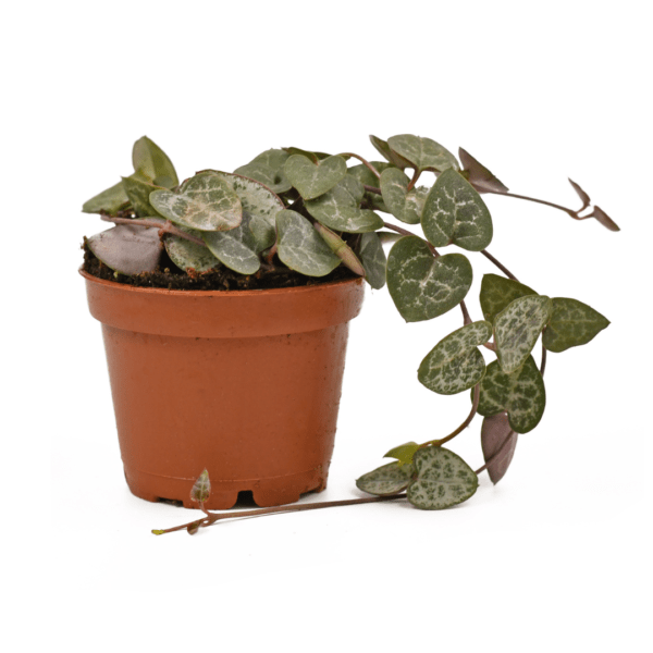La chaîne des cœurs, qui nous arrive d’Afrique du Sud, est une plante facile pour débuter. Peu exigeante, son design graphique en fait une plante charmante pour votre appartement. Les longues tiges, pouvant atteindre 2 mètres, portent de jolies feuilles panachées en forme de cœur. Plus l’exposition est ensoleillées, plus la panachure et les teintes violacées seront intenses.