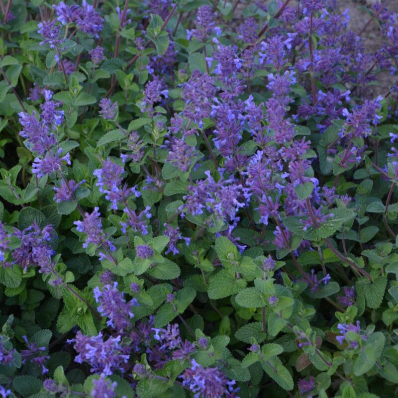 Cette variété de chataire est plus érigée et atteint 50 cm de haut. De la rosette de feuillage vert grisâtre se développeront des hampes florales portant de petites fleurs bleu violacé durant tout l’été. Son feuillage est fortement odorant lorsqu’on le froisse. Elle peut s’utiliser comme couvre-sol.