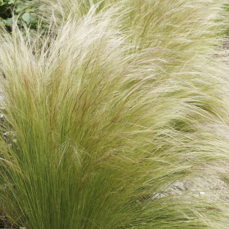 La Stipa tenuifolia, originaire d’Europe méridionale et centrale, forme des touffes de feuilles fines vert intense. Ses hampes souples portent des épis à barbes soyeuses, légères, blondes, ondulant à la moindre brise. Elle se démarque aussi en automne pour sa jolie coloration brillante.