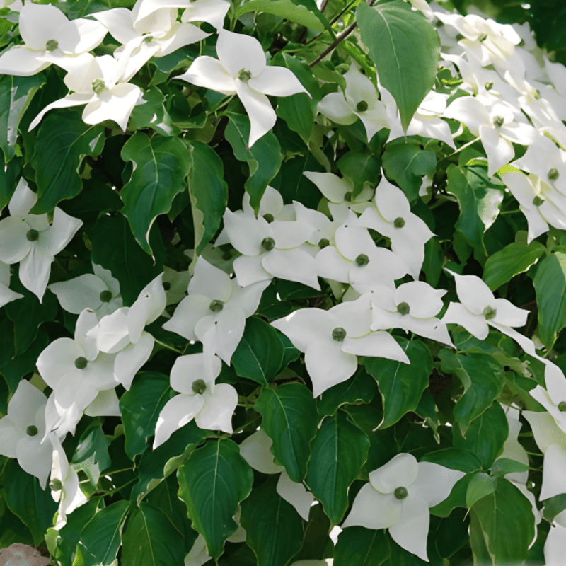 Une des plus belles variétés de cornouiller du Japon. Ce bel arbuste au port très dense se couvre de fleurs aux bractées blanches atteignant 5 cm de diamètre. La coloration automnale du feuillage est rouge écarlate particulièrement intense. Après l’été, ce sont alors des fruits ressemblant à des fraises qui apparaissent.