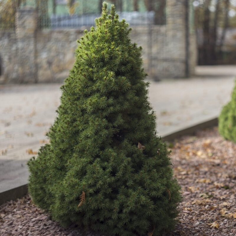 L’épinette blanche ‘Conica’ forme avec le temps une pyramide parfaite. Son feuillage vert tendre, très dense, lui confère l’aspect d’une plante taillée. Il convient aux rocailles ou à la culture en pot. Ce conifère est particulièrement rustique.