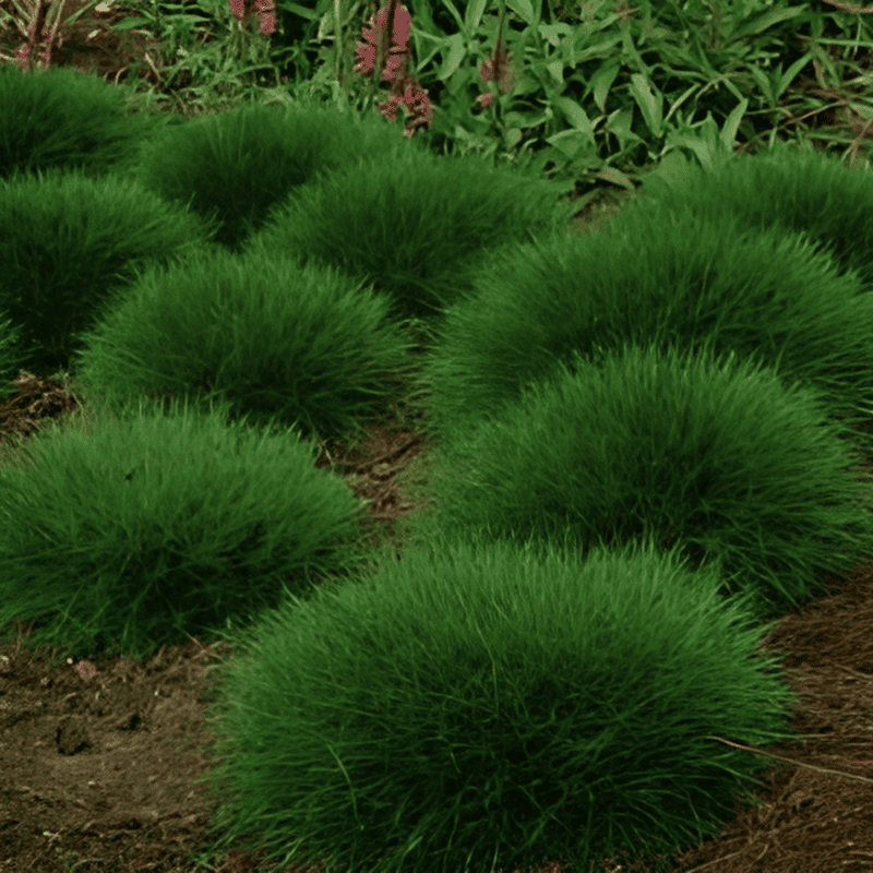 Cette petite fétuque forme de beaux coussinets vert foncé. Elle pourra aussi être utilisée comme couvre-sol.