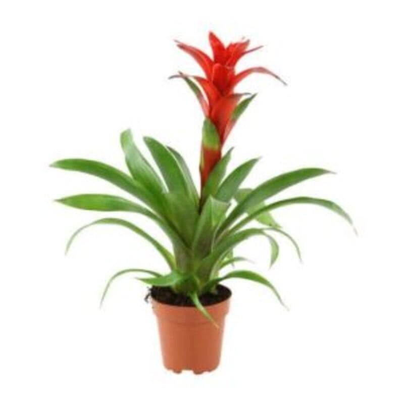 Très graphique, cette belle fleur tropicale fait partie de la famille des broméliacées, comme l’ananas. Son feuillage est disposé en rosette et accueille en son centre des bractées aux couleurs vives. Il se plaira dans les endroits lumineux de votre intérieur, sans soleil direct. Ayant besoin d’humidité pour s’épanouir, il est nécessaire de bien suivre l’arrosage.