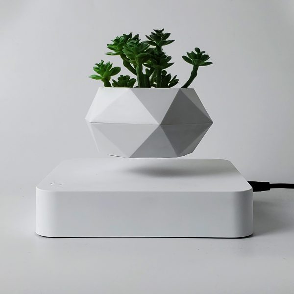 Caractéristiques : - Matière : pot résine avec finition blanc laqué et base en résine imitation bois - Poids net : 0.710 kg - Distance de lévitation : 2 cm minimum - Alimentation : adaptateur secteur 15V - 1A - Composition : 1 pot avec son aimant intégré + une base électromagnétiqueProduits similaires
