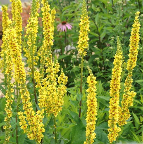 De leurs larges rosettes de feuilles jaillissent des hampes spectaculaires aux nombreuses fleurs jaunes. La molène apprécie les sols drainés et se cultivent facilement en terre ordinaire.