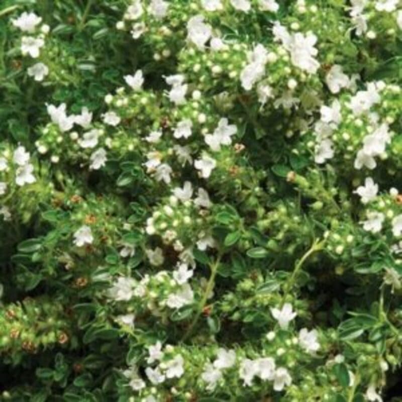 Le thym à feuillage persistant dégage une merveilleuse senteur. Le thym précoce ‘Albiflorus’ est la variété blanche du thym couché indigène.